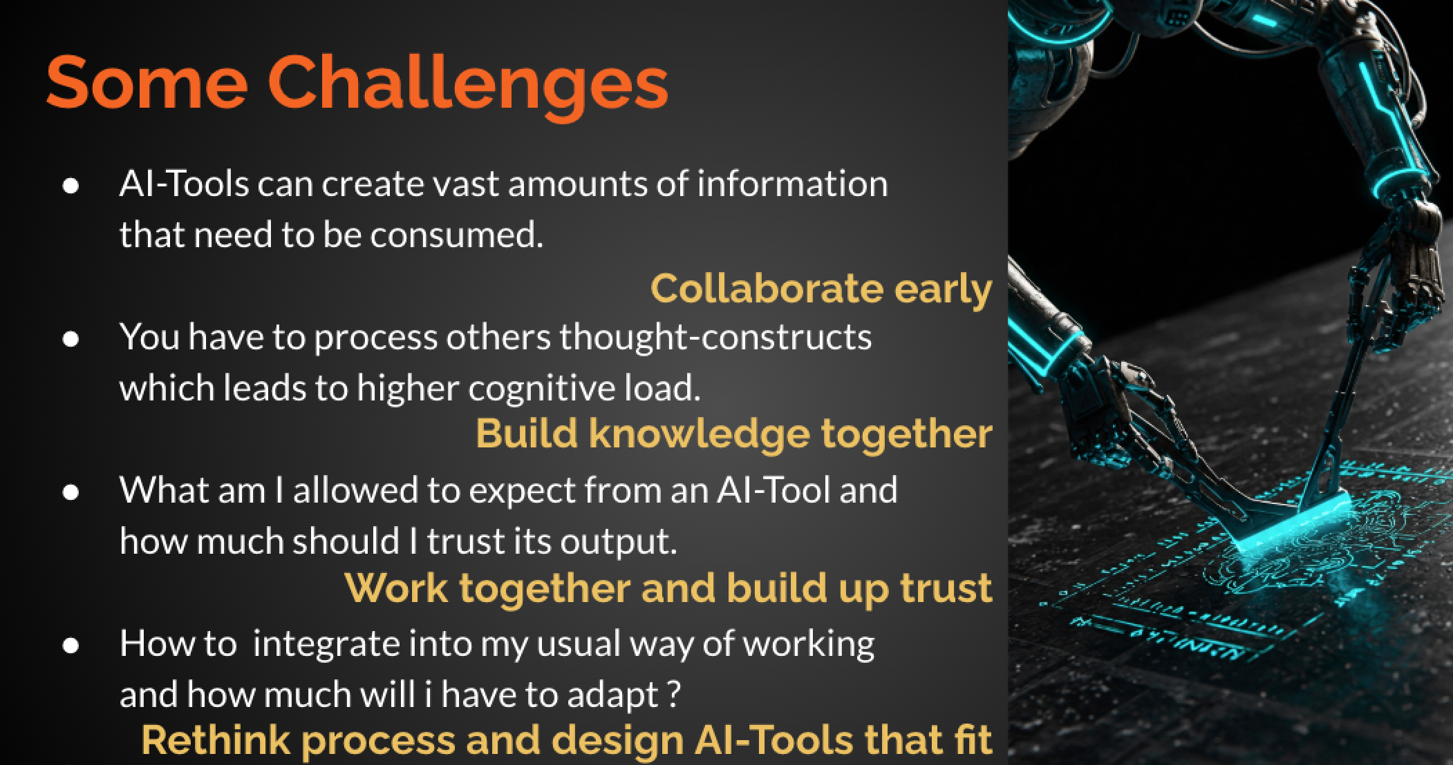 A useful frame from the slide below is: Challenges → Collaboration-oriented countermeasures.